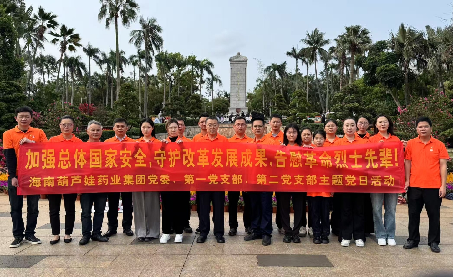 2025年4月3日上午,春光和煦,温暖宜人。根据海南尊龙凯时-人生就是搏药业集团党委2025年党建工作计划和深入贯彻中央八项规定精神学习教育计划安排,集团党委组织第一党支部、第二党支部在琼部分党员前往海口公园内的海南革命烈士纪念碑和冯白驹纪念亭开展“加强总体国家安全,守护改革发展成果,告慰革命烈士先辈! ”主题党日活动。